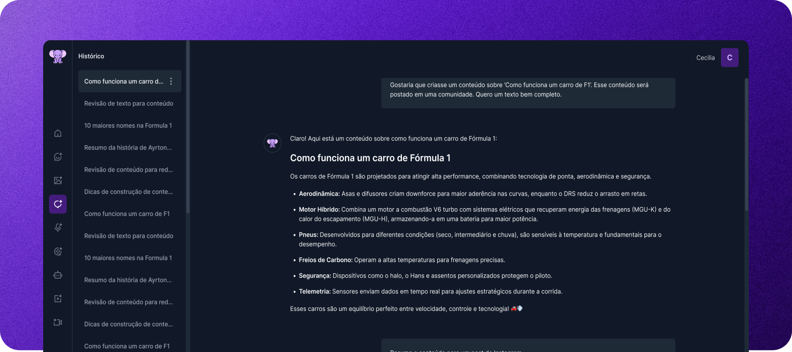 Converse com nossos Experts de IA, treinados para entender contextos complexos e entregar respostas precisas, personalizadas e alinhadas às suas necessidades. Mais do que assistentes, são parceiros inteligentes que ampliam sua visão, elevam a qualidade das suas decisões e agregam valor real ao seu fluxo de trabalho. Uma experiência pensada para quem busca eficiência, estratégia e evolução contínua.